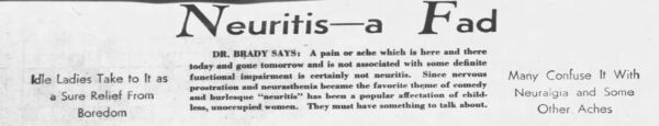 “Neuritis—a Fad” by Dr. William Brady, courtesy of Newspapers.com
